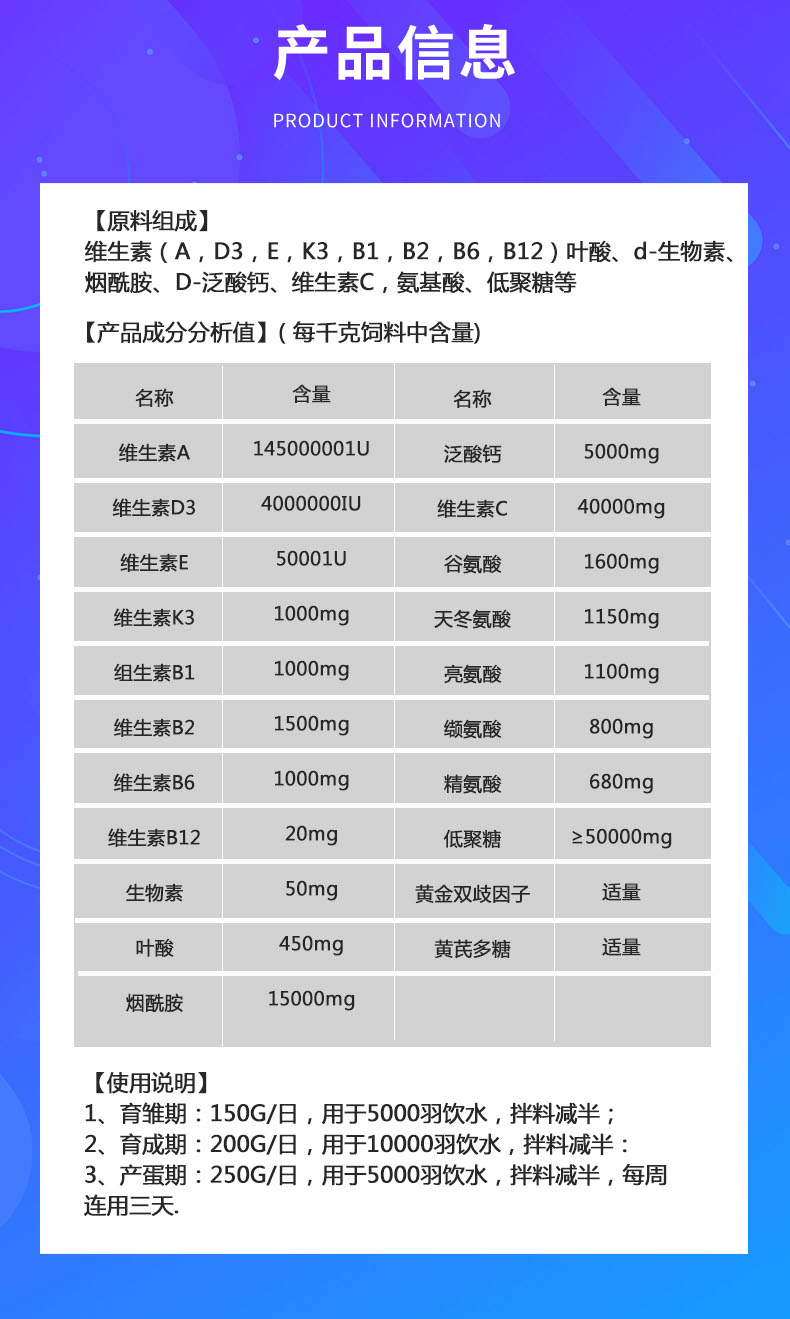 蛋鸡用维生素纳米力诺威调节肠道提升饲料转化率复合维生素饲料